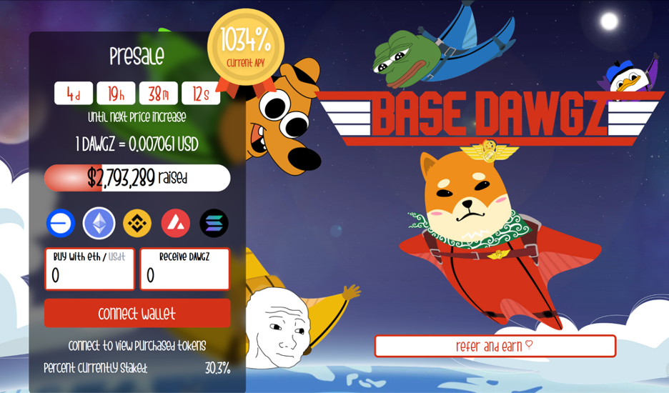 Base Dawgz is a community-oriented meme coin with an innovative refer-to-earn(R2E) model as the backbone for its growth. The token is still early in its ICO but has raised $2.7 million nonetheless.