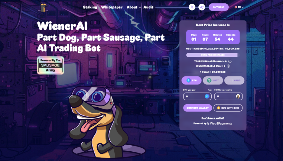 While the bot utility is causing a stir, investors are also stoked about WienerAI’s staking mechanism.