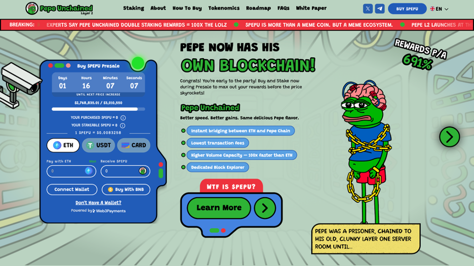 Pepe Unchained is a new meme coin inspired by the infamous Pepe coin.
