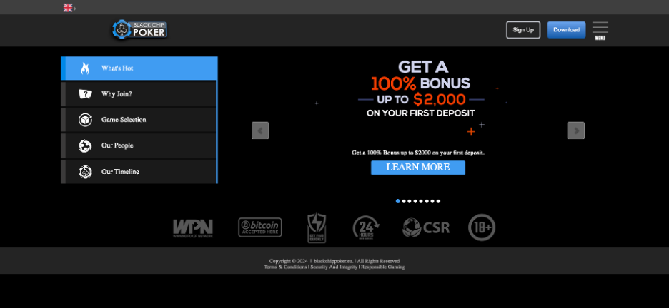 Black Chip Poker, our next pick in the lineup of the Best Crypto Poker Sites Ranked for US Players 2025, is a powerhouse in the crypto-gaming sphere. This platform distinguishes itself by offering robust security measures and a seamless integration of cryptocurrency transactions.