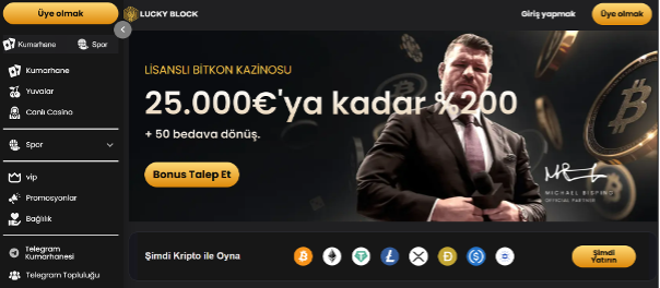 | 7. Lucky Block | 3.500+ oyun | %200’e kadar hoş geldin bonusu | Mevcut | Kripto para, kredi kartları |