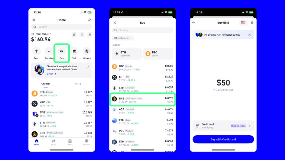 Initially built for Ethereum, MetaMask has expanded its support to include BSC, making it one of the most popular Web3 wallets for interacting with BSC-based dApps. While it started as a browser extension, it is now available as a mobile app, allowing users to manage their BNB assets conveniently.