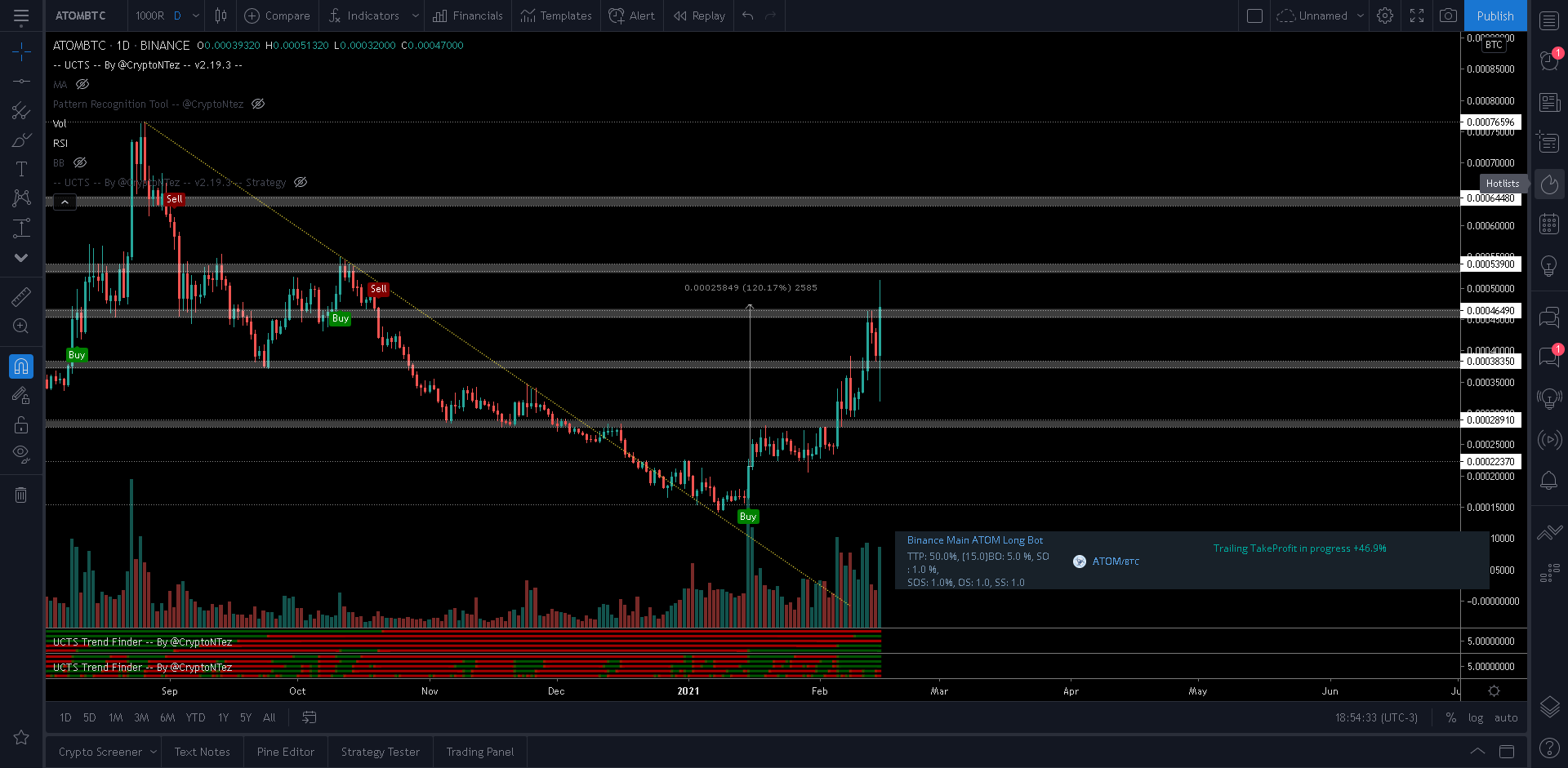 Cosmos looks poised to grow by another 60 percent in bitcoin-enabled markets. Source: ATOMBTC on TradingView.com