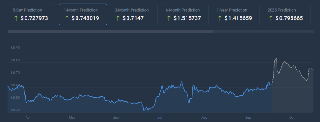 According to CoinCodex, a cryptocurrency analysis tool, XRP will continue its bullish path and gain by around 19.60% in the coming quarter. On the basis of this optimistic outlook, which reflects growing market confidence in the token, the price may reach $0.743019 by the 31st of October in the year 2024.