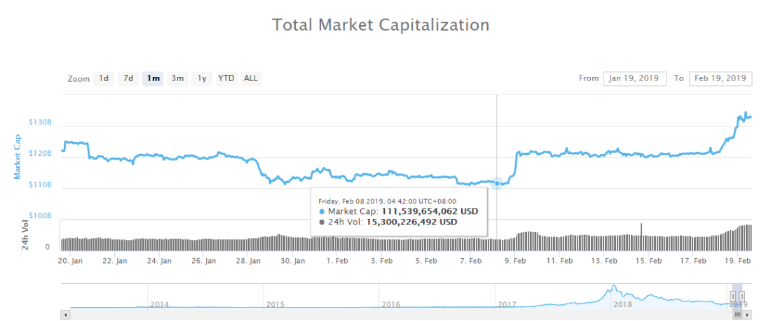 In the past 3 weeks, the valuation of the crypto market has increased by more than $22 billion from $111 billion to $123 billion.