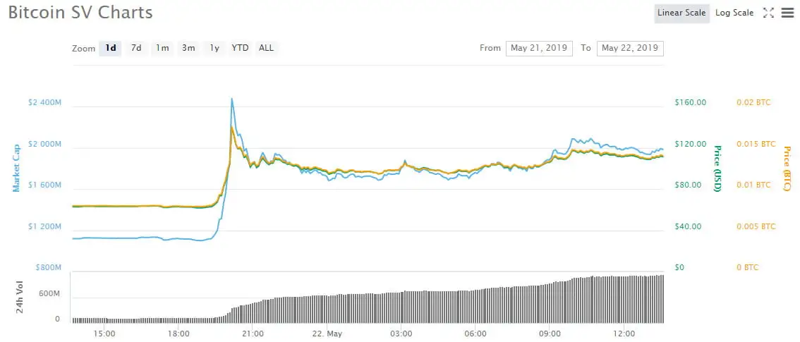 The top twenty is a little mixed but today’s clear champion is Bitcoin SV which has spiked an epic 80 percent since yesterday. With volume surging tenfold to over $1 billion BSV doubled to $140 before pulling back to $110 where it currently trades. Craig Wright’s successful granting of US copyright registration for the Bitcoin whitepaper has sent his version of Bitcoin to the moon.