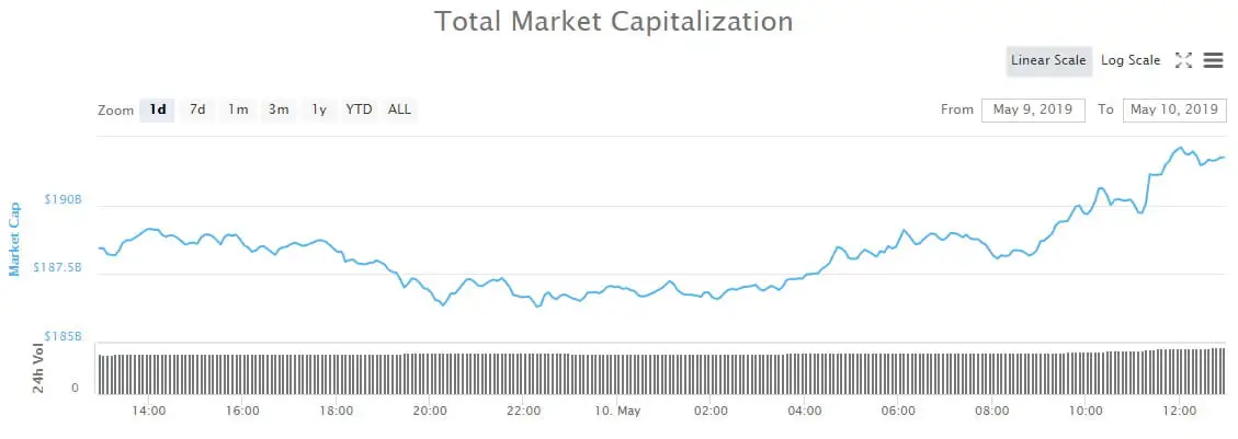 The end of the week has seen crypto markets hit another new high for 2019. Bitcoin is pushing things higher as it eats away at the altcoins and itself posts new highs for the year. Total market capitalization just passed $190 billion for the first time since November 2018.