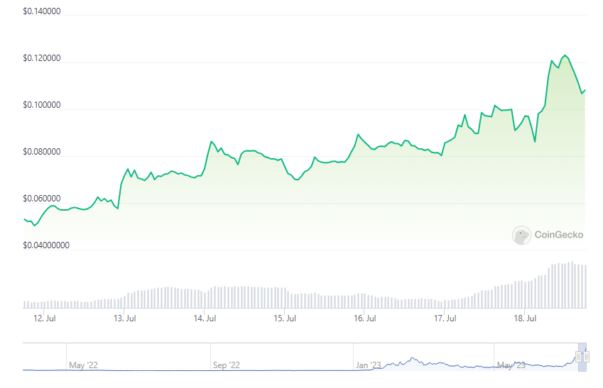 Based on crypto market tracker Coingecko figures, this lesser-known RLB coin has skyrocketed by more than 120% in the last seven days. At the time of writing, RLB was trading at $0.1224, up 24% over the previous 24 hours.