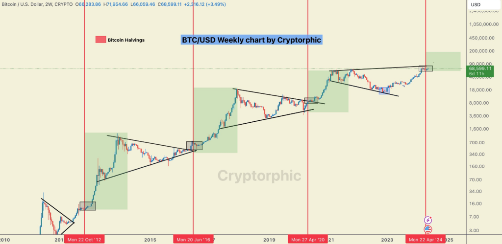 Bitcoin halvings are significant events, here are the percentages of Bitcoin’s price increase one year after each halving… pic.twitter.com/QEmNN8OuP2— Cryptorphic (@Cryptorphic1) May 27, 2024