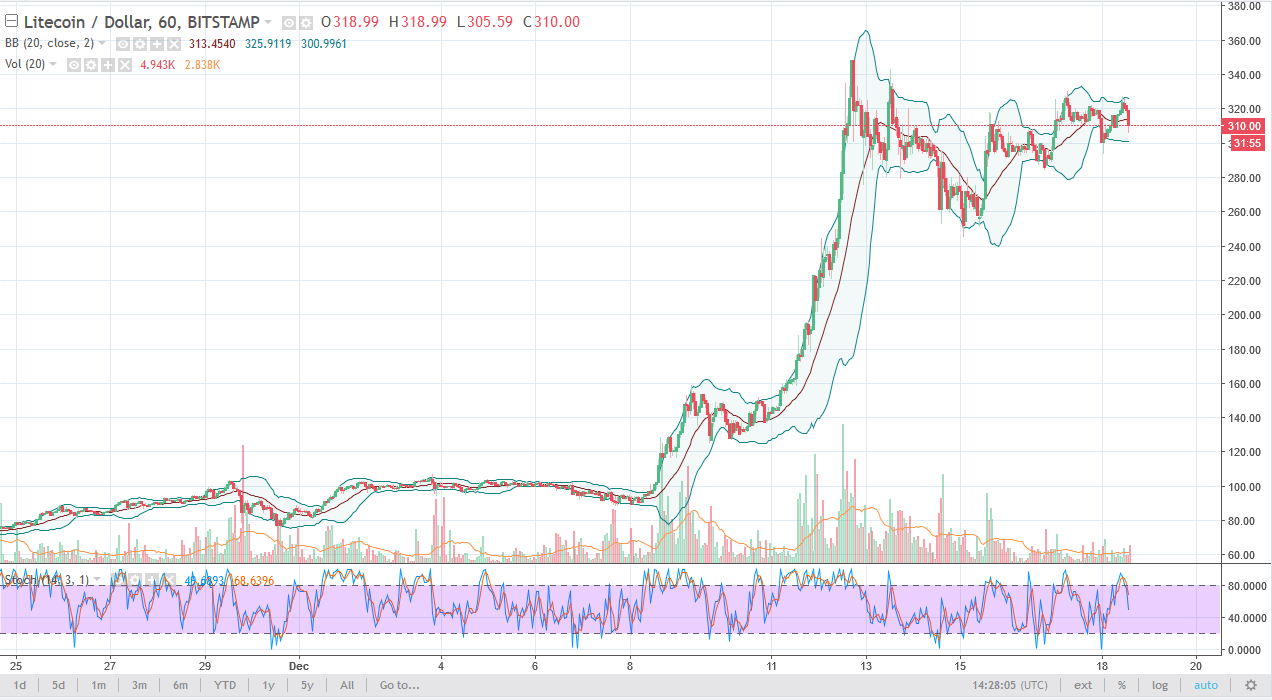 Litecoin is rising slightly, but quite frankly at this point it looks like we are spending more time trying to build up momentum to the upside than anything else. A break above the $350 level should send this market much higher, and by the measurement that I am taking, we are looking at a move to $425 level. Pullbacks of this point continue to offer value in a market that is very strong.