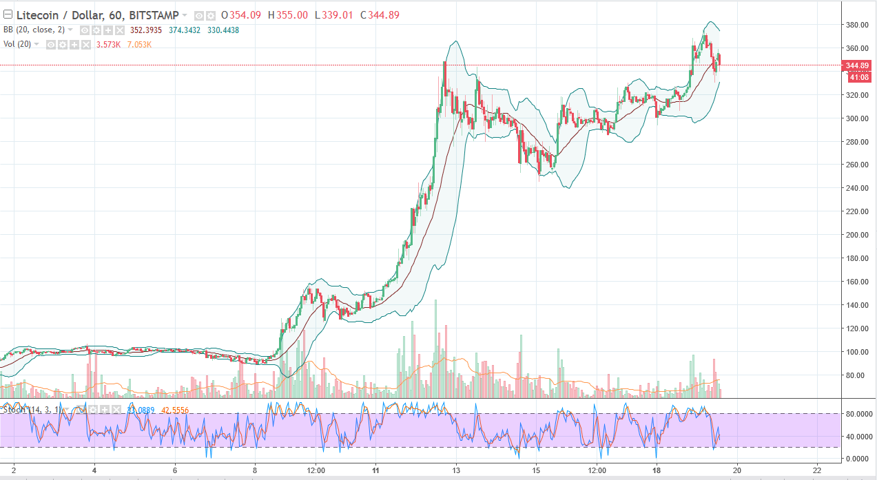Litecoin continues to grind higher, as we broke above the $350 level during the trading session on Tuesday, and extended gains towards the $375 level. There should be support underneath though, and I think it’s only a matter of time before the markets continue to go upwards. I like buying dips, and I believe that the $400 level will be targeted longer term.