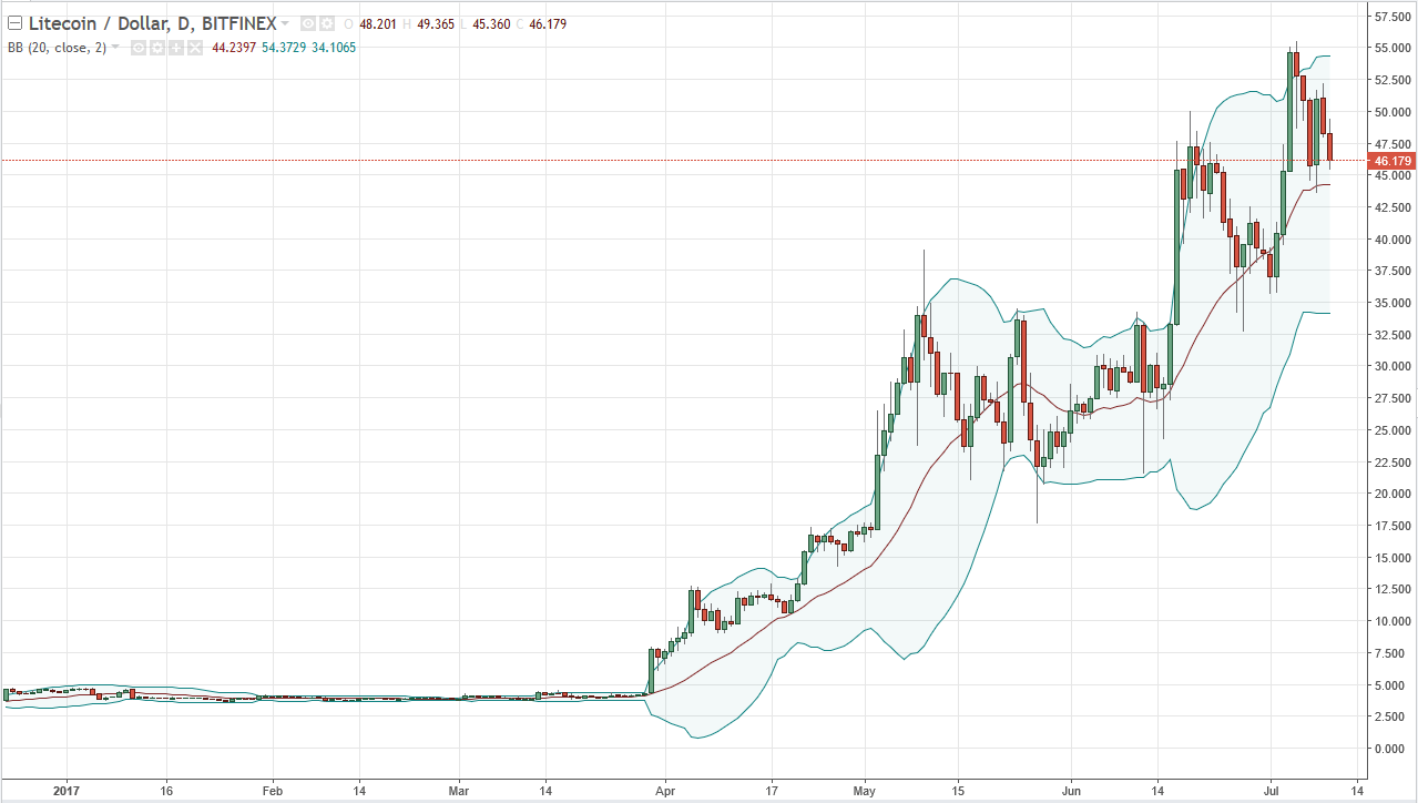 LiteCoin also had a negative session on Monday, testing the $45 level. This is an area that should be supportive due to the large, round, psychologically significant nature of the handle, and of course the previous action. Because of this, I believe that we may get a buying opportunity near the $45 level when it comes to this market.