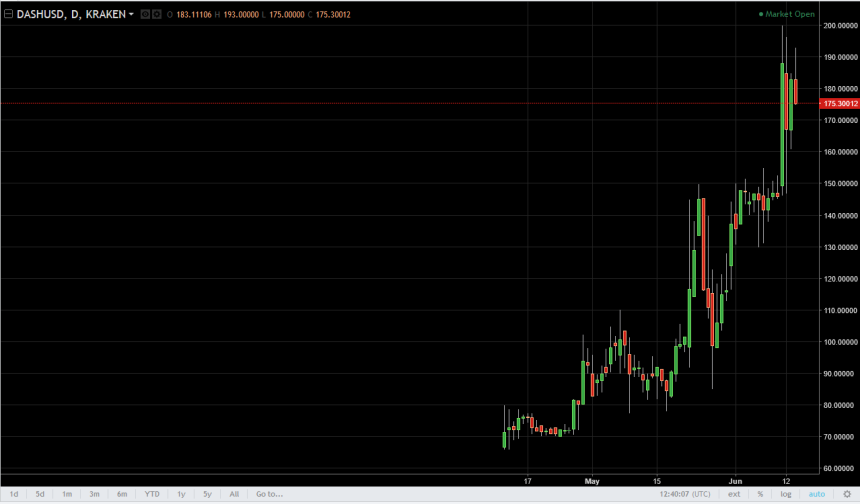 DASH initially tried to rally during the session on Wednesday, but turned around to form a negative candle for the session. We are starting to see a bit of a bubble in the crypto currency sector, and this of course is a going to be any different. I believe that there is massive support below at the $150 level underneath. Either way, the market looks as if it can get a nice corrective move in the short term so that we can pick up value.