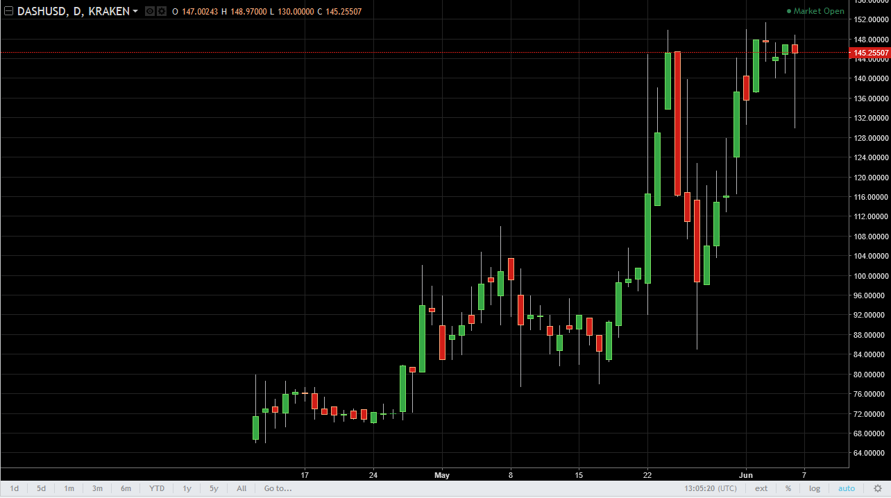 DASH initially fell during the session on Tuesday, but found enough support after a significant pullback to turn around and form a hammer. The hammer is a very bullish sign, and it now looks as if we can start to try to work towards higher levels, and a break above the $152 level should be assigned that the buyers are ready to continue pushing to the upside. Pullbacks continue to be buying opportunities.