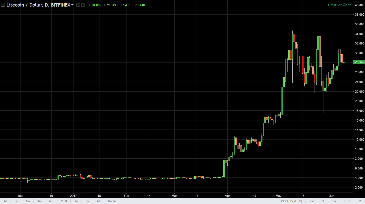 LTC/USD initially tried to rally during the day on Thursday but found quite a bit of resistance near the $30 level. Although I remain bullish of this market, I feel that we are not quite ready to break out to the upside yet. Look for short-term pullbacks as buying opportunities in a sustained move above $30 as a sign that we are ready to go looking for the $34 level above.