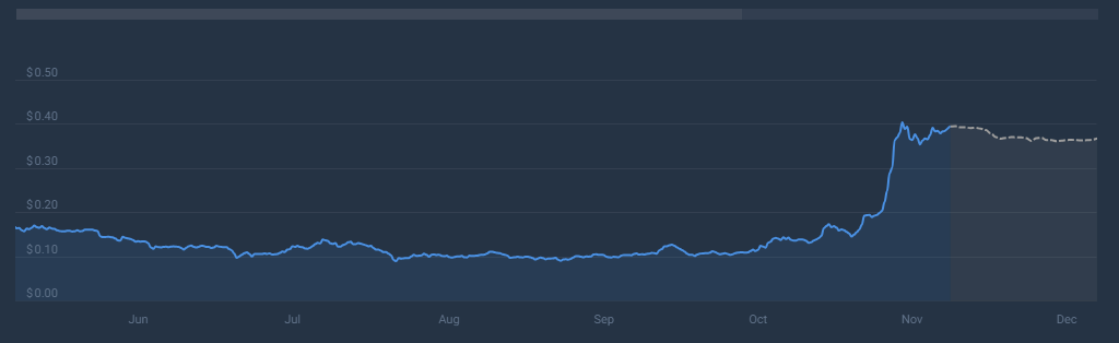 Search interest in Dogecoin peaked today, November 22, coinciding with a price increase, data from Google Trends shows. However, as public curiosity declined, so did the price, demonstrating a significant link between attention and performance. While some see this as an indication of Dogecoin’s unexpected character, others believe that it demonstrates how community-driven it is.
