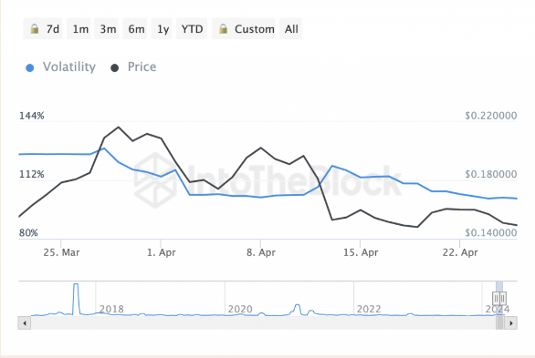 One factor tempering enthusiasm is Dogecoin’s current lack of volatility. While price swings are often a hallmark of the cryptocurrency market, DOGE’s volatility has hit a 30-day low.