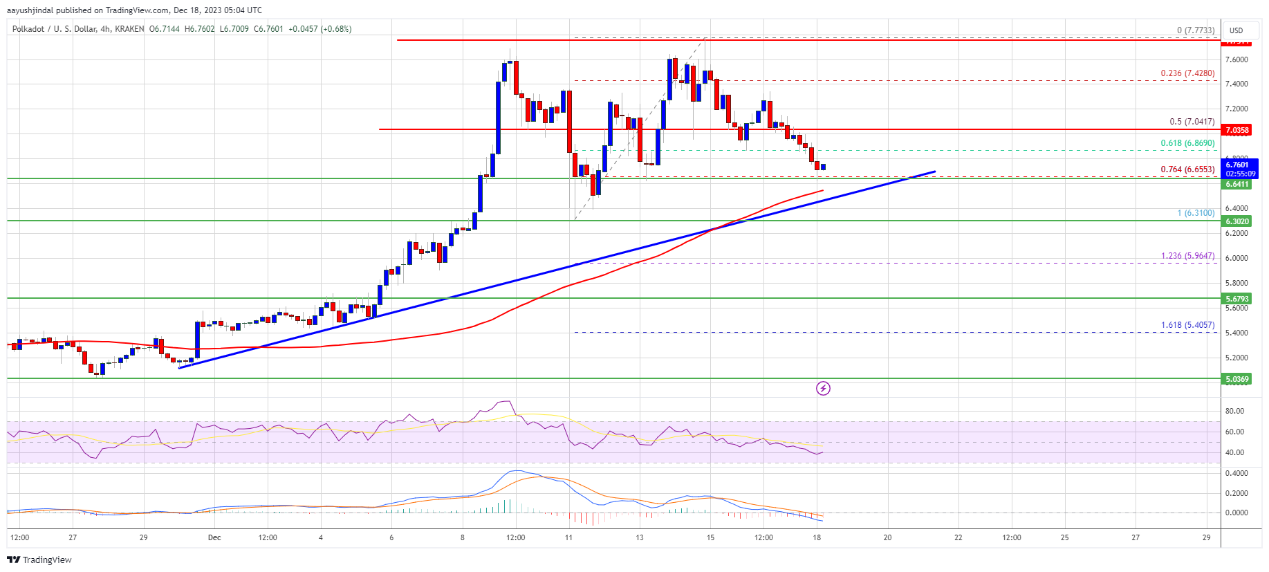 - DOT is consolidating gains above the $6.60 support zone against the US Dollar.