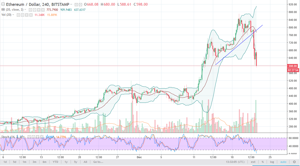 Ethereum has collapsed during the trading session on Friday, losing 25% as I record this video. The market has tested the $600 level, and if we break down below there, it’s very easy for this market to drop down to the $500 level, probably within a few hours. The markets need to find some type of support at that area, or things could get very ugly. This type of precipitous breakdown is not one you want to be buying. Stability is needed before anybody goes long of Ethereum at this point.