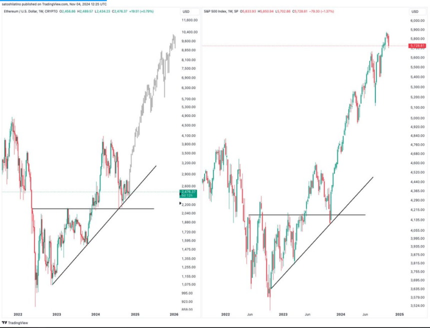 Martinez claimed that ETH is on the right trajectory to attain the $10,000 level, comparing the crypto to the S&P 500.