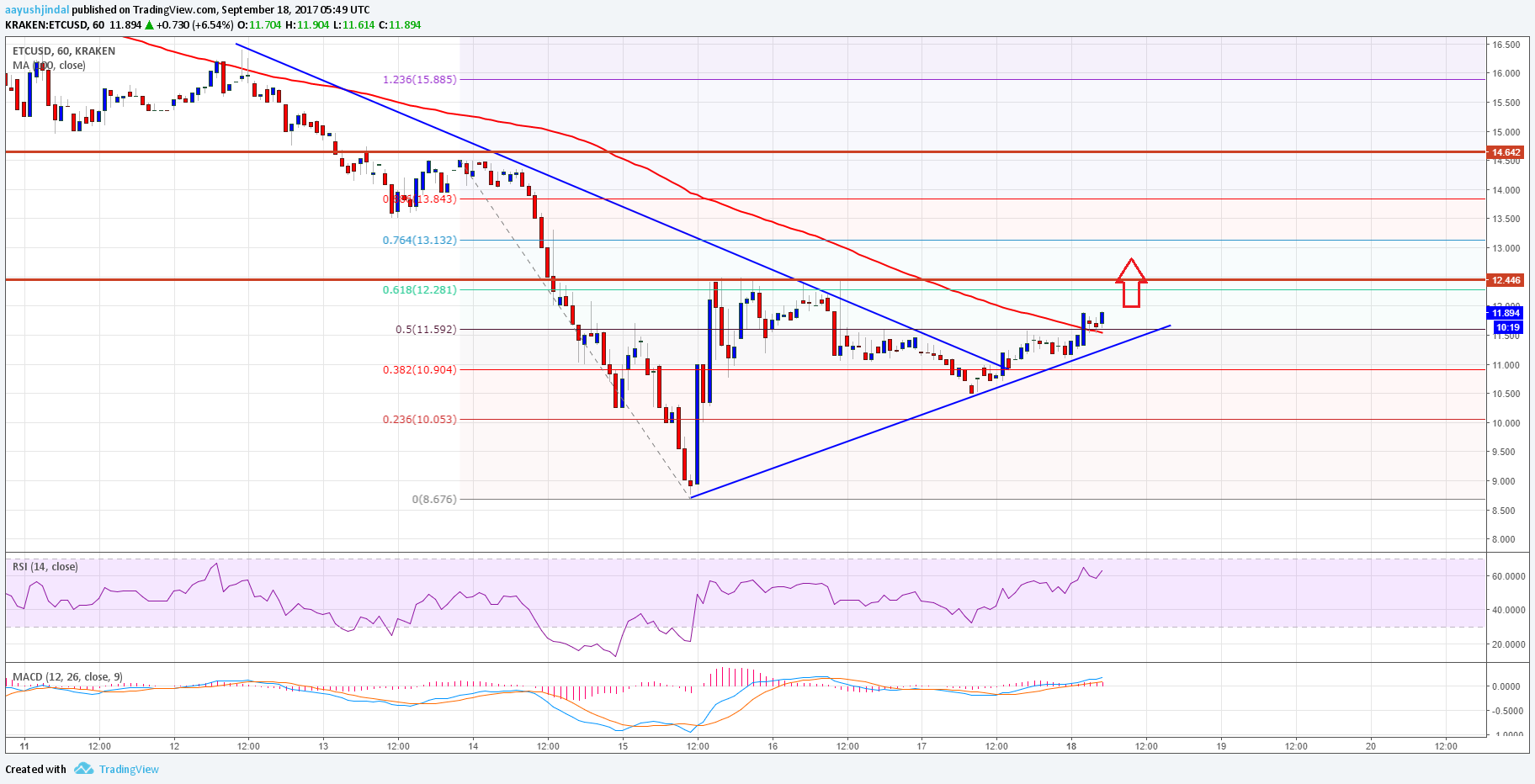Ethereum classic price has recovered well against the US Dollar and Bitcoin. ETC/USD now has to clear $12.30 for further gains in the near term.