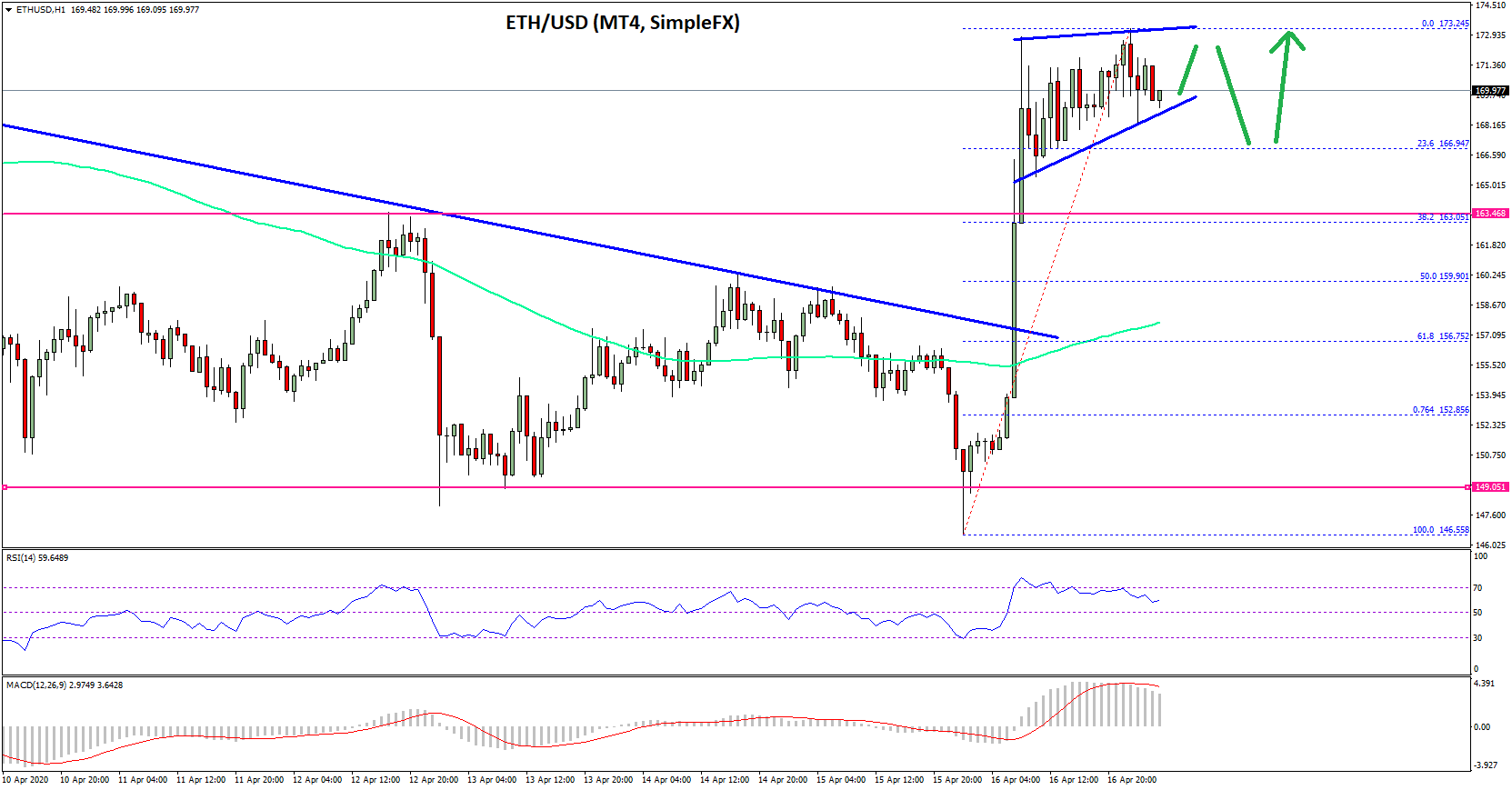 It opened the doors for a sharp rally above the $160 barrier and the 100 hourly simple moving average. Ethereum gained bullish momentum and surpassed the $170 resistance. It traded close to the $174-$175 resistance area and it is currently consolidating in a range.