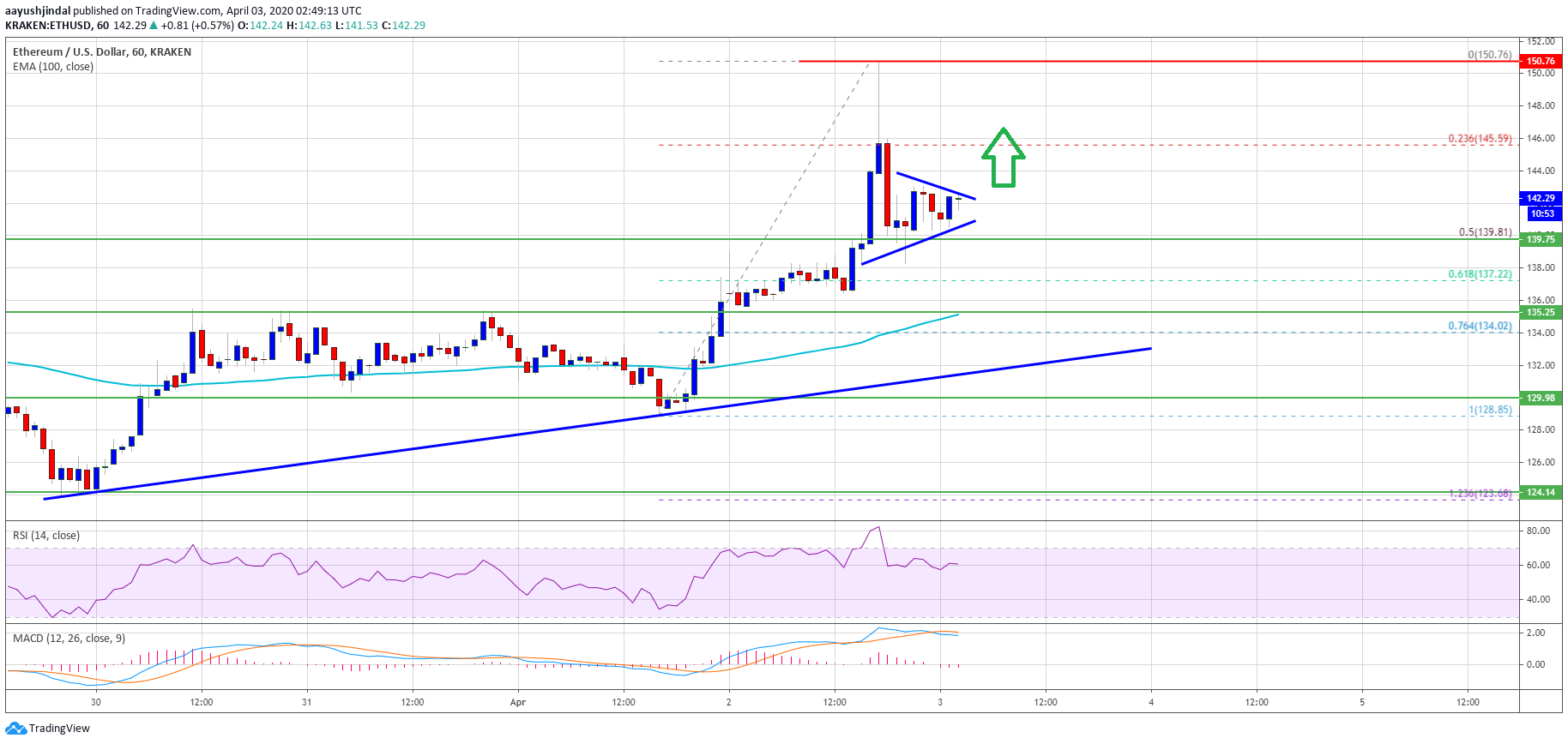 - Ethereum is showing a lot of positive sign and it is trading above $140 against the US Dollar.
