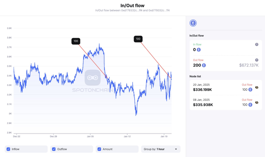 According to a recent post by Spot On Chain on Twitter/X, the foundation has recently moved another 100 ETH in exchange for 336,475 DAI. According to the account, the foundation sold 200 ETH tokens for $67k in the first few days of 2025 at an average cost of $3,361. The account added that ETH is 31% below its 2021 high of $4,878, while Bitcoin continues to retest its highs and currently breached the $109k level.