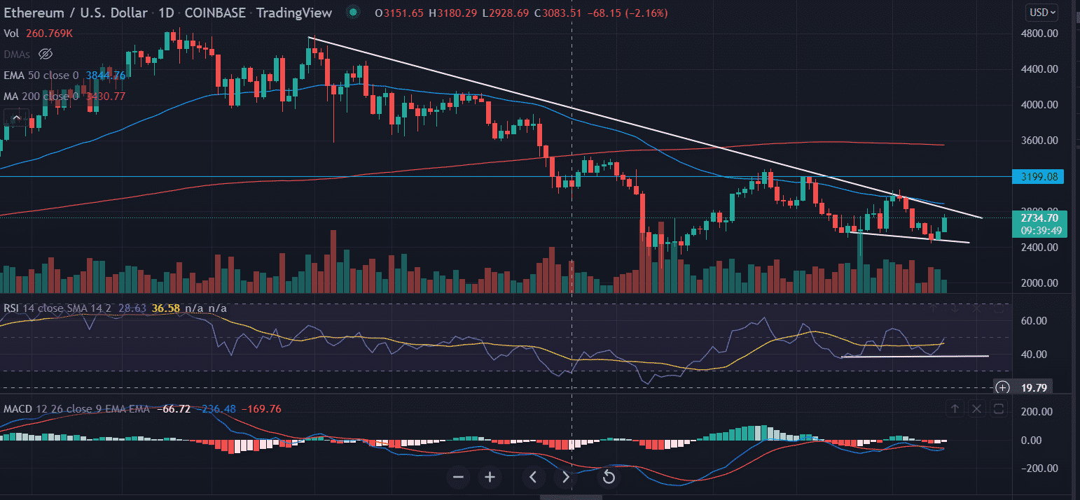 Over the last four months, the king alt has been on a sharp fall from its ATH. At the $3,100-mark Point of Control, there was a battle between buyers and sellers.