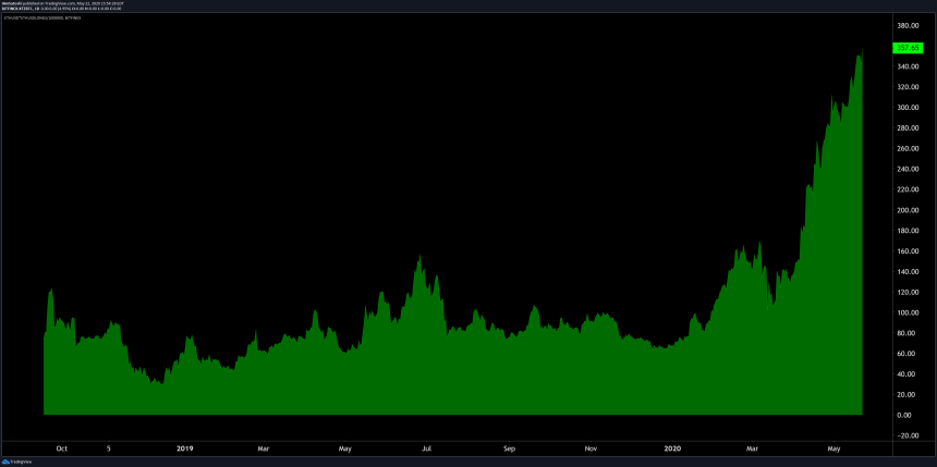 The crypto’s latest upswing marks an extension of the momentum which was first incurred following the crypto’s drop to lows of $190 earlier this week.