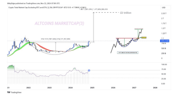 MikyBull Crypto has optimistically revealed that from late December 2024 to March 2025, investors and the broader crypto market may witness “the real fun” of the altcoin season. This suggests that the altcoin market is expected to embark on a significant rally, with numerous small-cap cryptocurrencies experiencing varying price increases.
