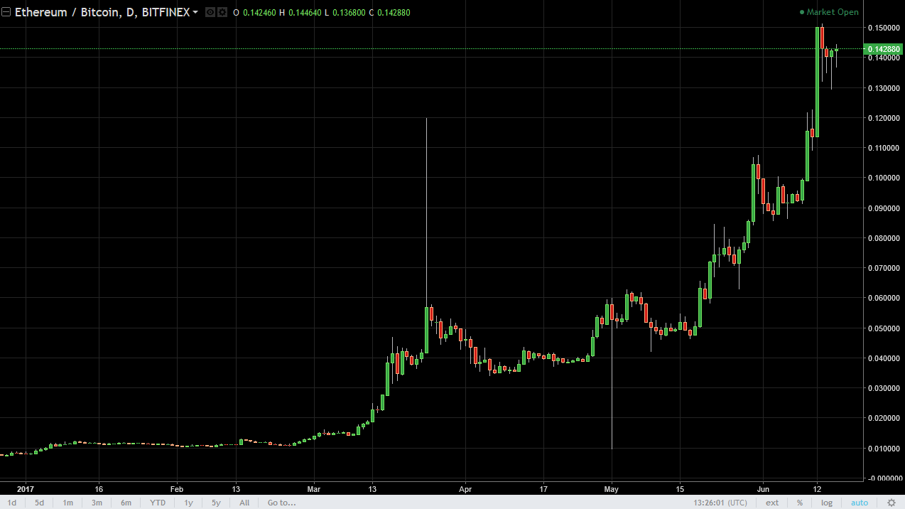 Ethereum initially fell against Bitcoin, but found enough support to turn around. The hammer from the Thursday session was very bullish as well, as it was so prominent and bounced directly off a large, round, psychologically significant round number. It looks as if the 0.13 level will offer support, but I think that we are more than likely going to see a continuation of consolidation in the short term.