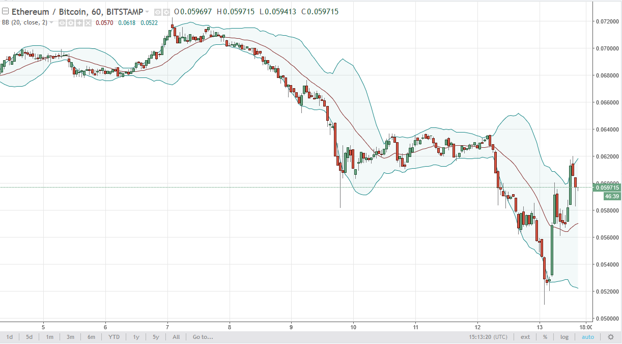 Ethereum rallied against Bitcoin, reaching the 0.062 level before pulling back. It looks like we are going to try to break out, but I would not be willing to buy this pair until we get above the 0.064 handle, which would show a significant pickup and momentum, and a smashing of resistance. In the meantime, it’s probably best to play Ethereum against the US dollar still.