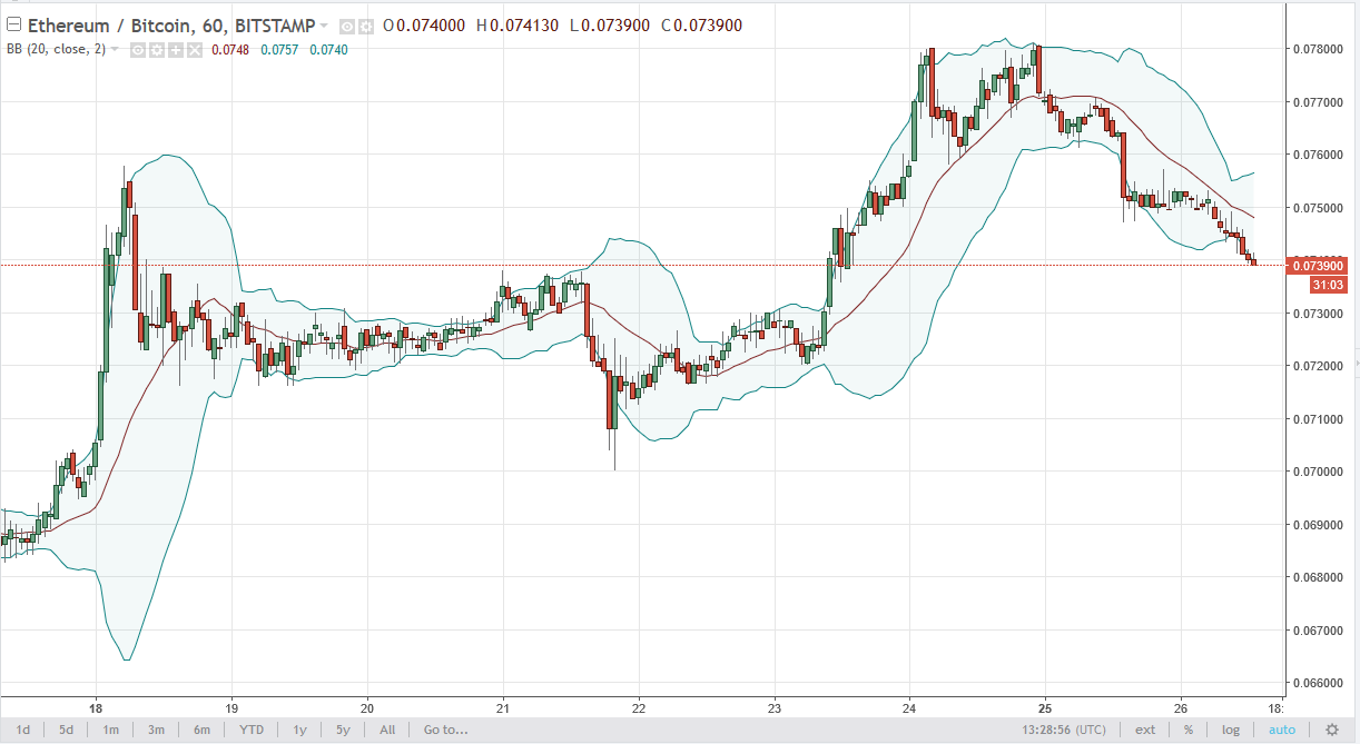 Ethereum continues to fall against the Bitcoin crypto currency, but I think there is support just below. Quite frankly, I like Bitcoin better than Ethereum for value, so although I wouldn’t necessarily sell this market, I don’t necessarily want to buy it either. It’s probably best to sit on the sidelines when it comes to the ETH/BTC market.