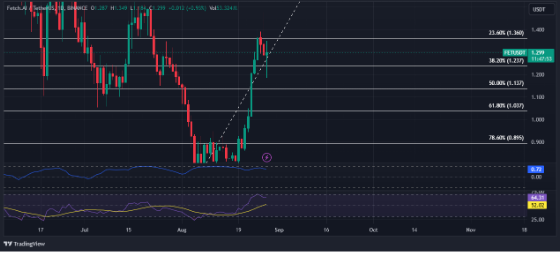 With the token’s rejection on $1.3 and the subsequent rejection of the bears on $1.2, FET will continue this price movement in the coming weeks as the market might continue to be bearish within the coming days. Any bullish change within the market’s environment will offset the bear’s momentum, potentially opening the door towards $1.5.