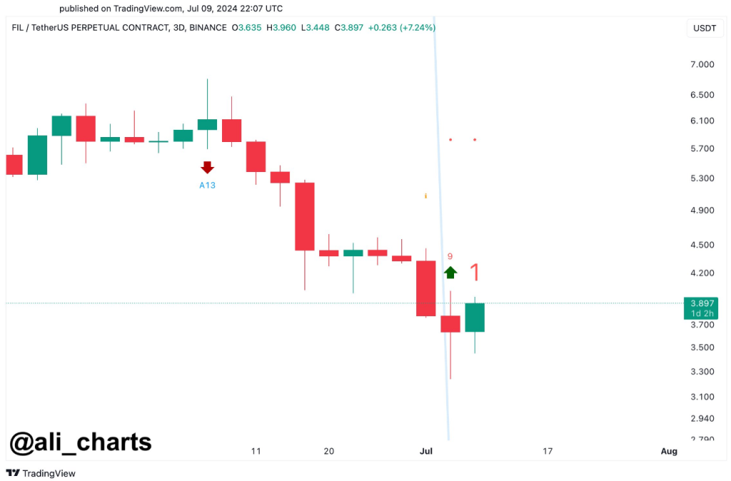 The TD Sequential presents a buy signal on the #Filecoin $FIL 3-day chart, anticipating a rebound of one to four candlesticks! pic.twitter.com/DVenXriA24