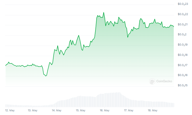 The rising Futures Open Interest for FLOKI is the main indicator inspiring enthusiasm. Reflecting the amount of existing futures contracts, Coinglass claims that this number has skyrocketed a startling 110% since May 1st, attaining a 30-day high almost $20 million. This implies a flood of fresh market players filling FLOKI slots, maybe expecting more price rises.