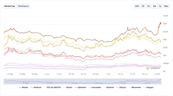 近期,Layer-2代幣如Mantle(MNT)、Optimism(OP)、Arbitrum(ARB)和Immutable(IMX)的復蘇表明,市場再次關注可擴展性解決方案。