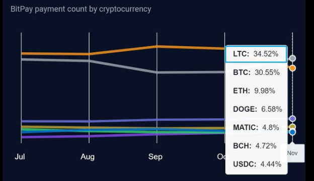 Meanwhile, the biggest crypto payment processor in the world, BitPay, now accepts LTC as its preferred coin. Beyond Bitcoin [BTC] and Ethereum [ETH], it has demonstrated its supremacy in practical applications, accounting for 34% of BitPay’s payment count in cryptocurrency.