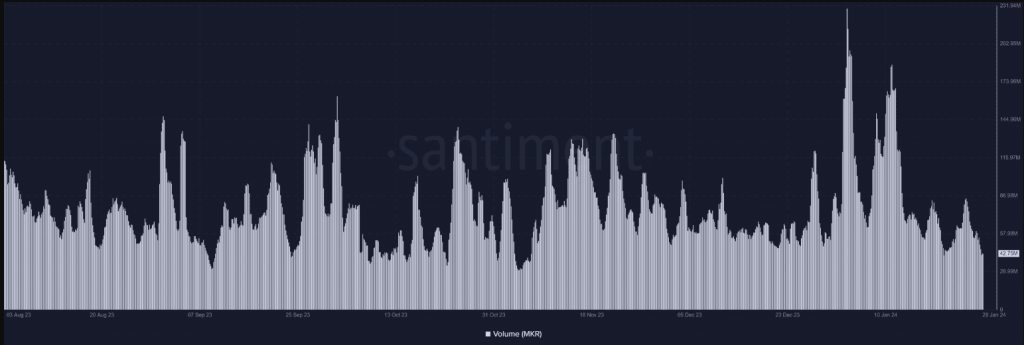 On the technical front, Maker’s daily chart paints a picture of recent struggle. Following the January 24th gains, prices have embarked on a descent, shedding over 3% by January 27th. This marks the steepest decline since the downtrend began two days prior. The continuation of this selling pressure, particularly if fueled by further whale offloads, could pose a significant challenge for MKR’s immediate future.