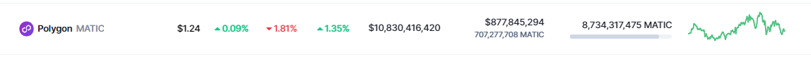 CoinMarketCap data shows that MATIC price is currently trading at $1.24, and down 1.81% as of this writing. The crypto has been drawing so much investor interest as of late.
