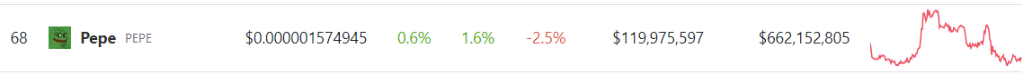 PEPE’s price on CoinGecko currently stands at $0.00000157. Over the course of the past seven days, PEPE has experienced a slight decline of 2.5%. These recent figures have raised concerns among investors and analysts alike, as PEPE’s bullish momentum appears to be waning.