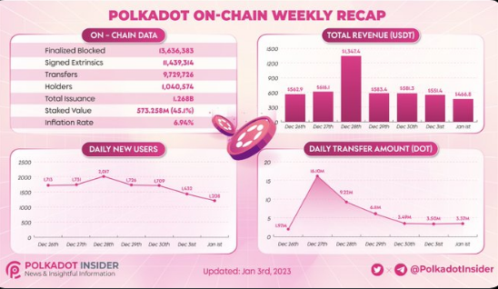 Polkadot (DOT) has ushered in the first week of 2023 on a strong note, rising 8% in the last seven days, data from Coingecko shows, Wednesday.