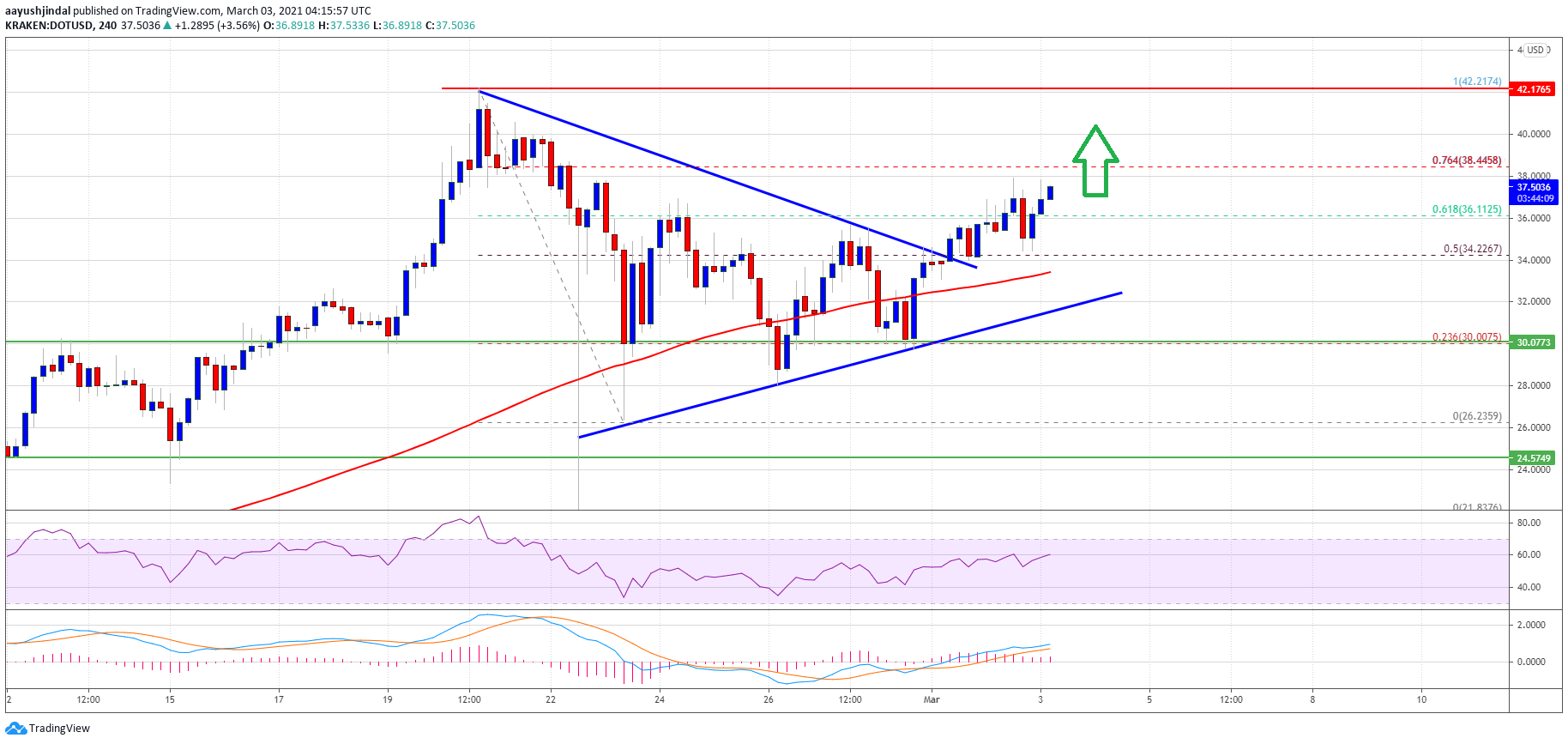 Polkadot’s DOT corrected lower from $42.00, but it remained stable above $30.00 against the US Dollar. It is now rising and it seems like the bulls are eyeing a fresh increase to $40.00 and $42.00.