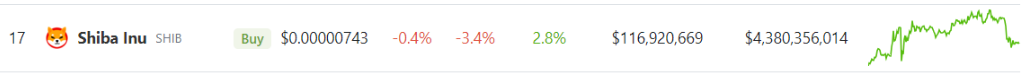 As per CoinGecko, the price of SHIB currently stands at $0.00000743, reflecting a decline of 3.4% over the past 24 hours. However, despite this recent dip, SHIB has managed to rally by 2.8% over the course of the past seven days.