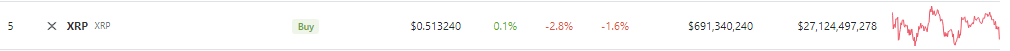 As of now, XRP’s price hovers around $0.513, marking a decline of 2.8% over the last 24 hours. The past week has seen the cryptocurrency grappling with losses amounting to 1.6%, CoinGecko data shows.