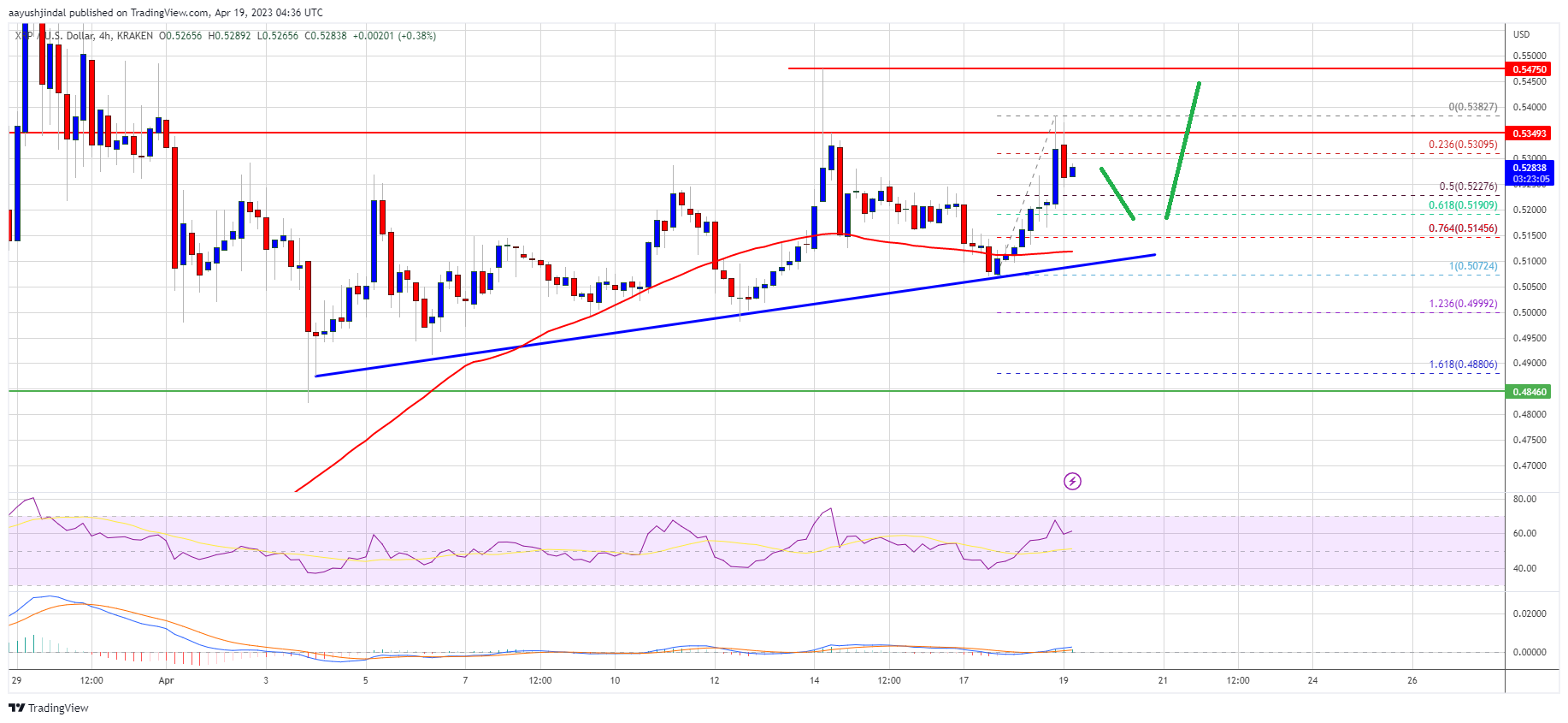- Ripple started a fresh increase from the $0.500 zone against the US dollar.