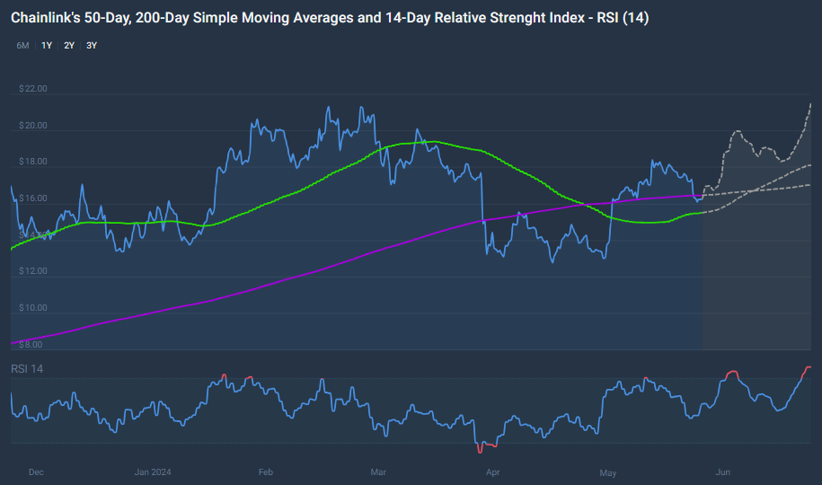 Technical analysis indicates that while the short-term 50-Day SMA will close at $18.14 on the same day, Chainlink’s 200-day Simple Moving Average (SMA) will rise in the next 30 days and close at $17.05 on July 9, 2024.