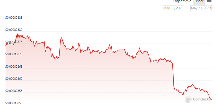 Shiba Inu’s price on CoinGecko stands at a minuscule $0.00000853, experiencing a 2.3% dip over the past 24 hours and a gradual seven-day decline of 1.6%.