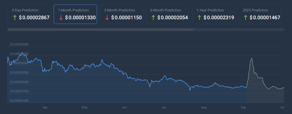 Still, not all digits indicate an upward trend. The current market for Shiba Inu, in the Fear & Greed Index is dim at 33 (Fear). CoinCodex also made some predictions regarding SHIB and it indeed agrees with the conservative point of view: by October 17, 2024, a minute drop of -0.51% is forecasted, and may get down to $0.00001330.